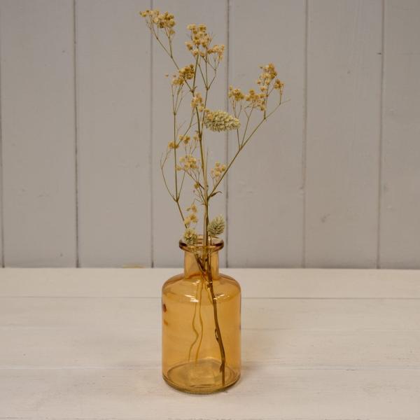 A slim bottle in warm cognac glass—simple, elegant, and easy to style in clusters.